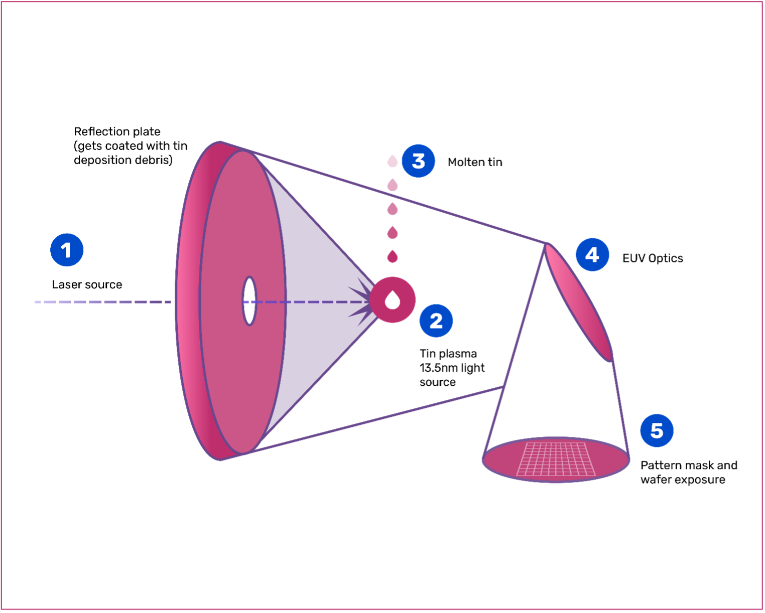 As process geometries continue to shrink, Extreme Ultraviolet (EUV) lithography is increasingly being deployed. The 13.5 nm wavelength EUV light is created by vaporizing droplets of molten tin with a carbon dioxide laser, creating a plasma.